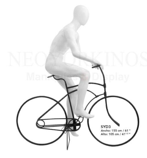 maniquíe ciclista caballero de fibra de vidrio pintado en color blanco, gris o negro. ( la bicicleta display se vende aparte )